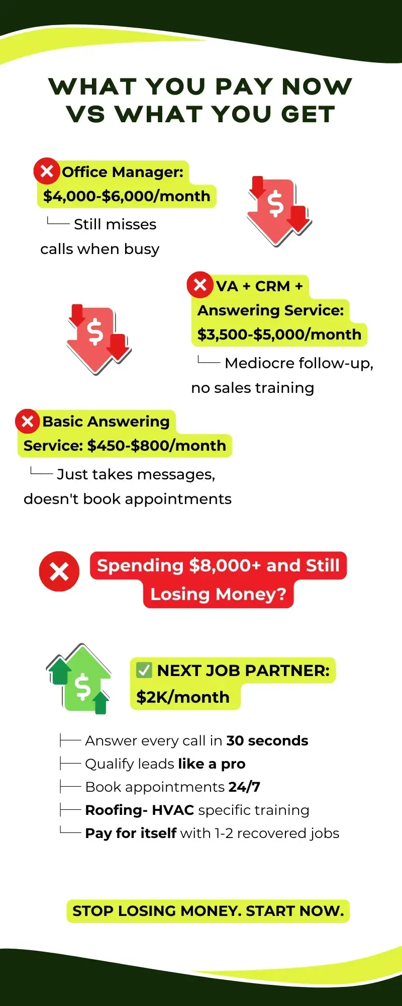 Just one recovered replacement appointment (A/C or Roof) pays for our service for months. Your profit is immediate.
